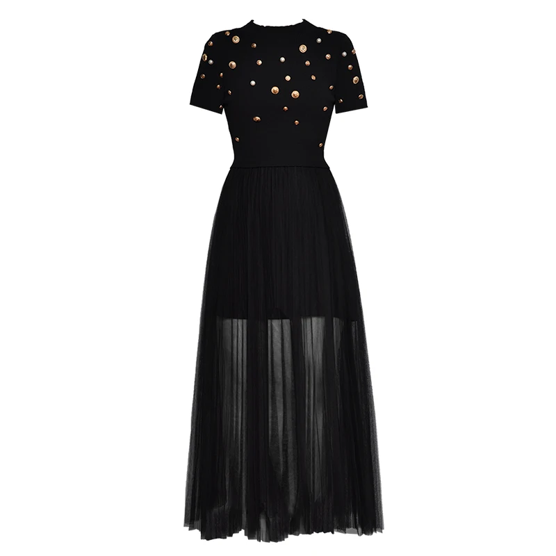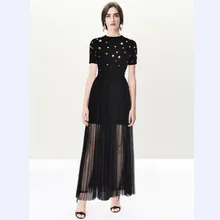 .Gallery for Luxury Runway Women Set Two Piece High Quality Women Fashion Knitted Top Beading Designer Pleated Tutu Long Skirt Suits Outfits