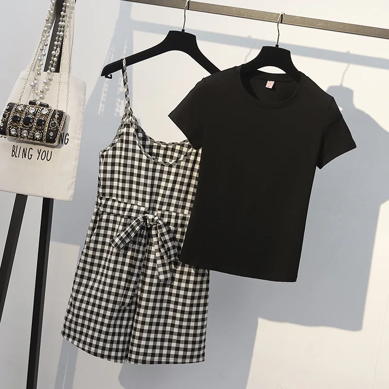 If You search information for Women's Sets, then GOPLUS Two Piece Set Women Summer Korean Vintage O-Neck Short Sleeve Tshirt Bow Plaid Short Overalls Shorts 2 Pieces Set Womens is possible make you like