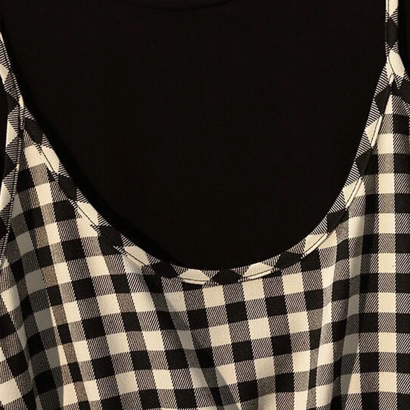 Addition Information of GOPLUS Two Piece Set Women Summer Korean Vintage O-Neck Short Sleeve Tshirt Bow Plaid Short Overalls Shorts 2 Pieces Set Womens