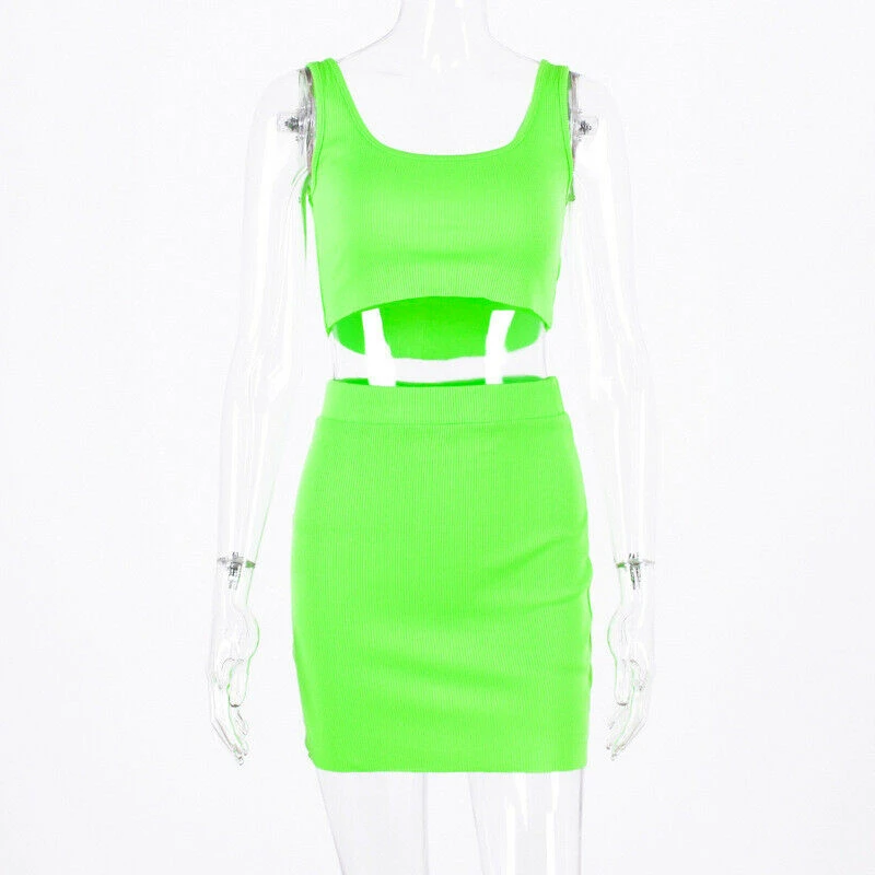 .Gallery for Summer 2Piece Set Women Crop Top Skirt 2 Piece Outfits For Women Clothing Ladies Clothes Solid Color Tracksuit Roupas Femininas