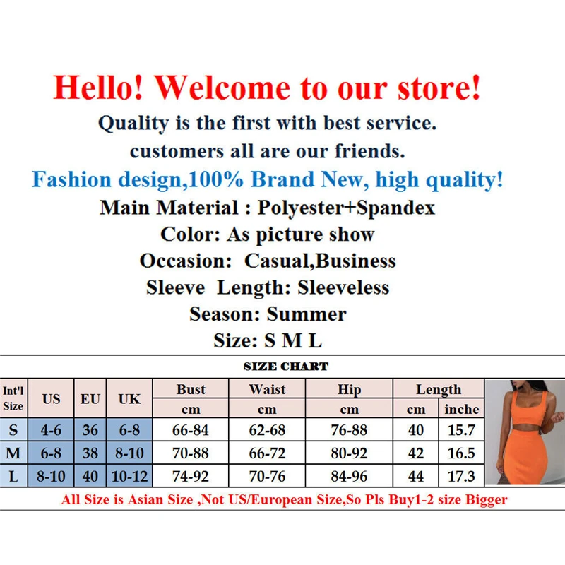 Addition Information of Summer 2Piece Set Women Crop Top Skirt 2 Piece Outfits For Women Clothing Ladies Clothes Solid Color Tracksuit Roupas Femininas