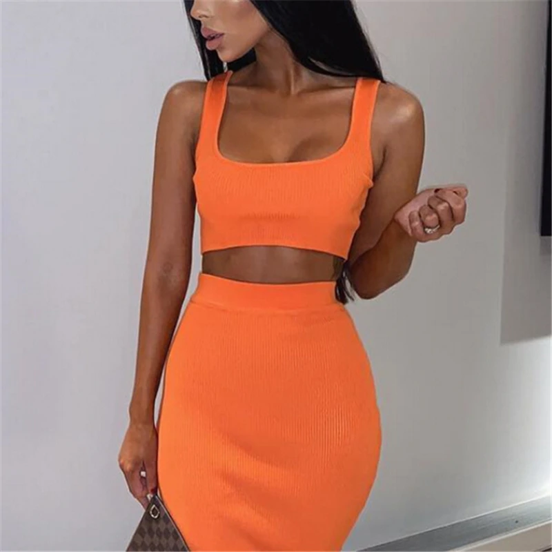 Offer Description of Summer 2Piece Set Women Crop Top Skirt 2 Piece Outfits For Women Clothing Ladies Clothes Solid Color Tracksuit Roupas Femininas