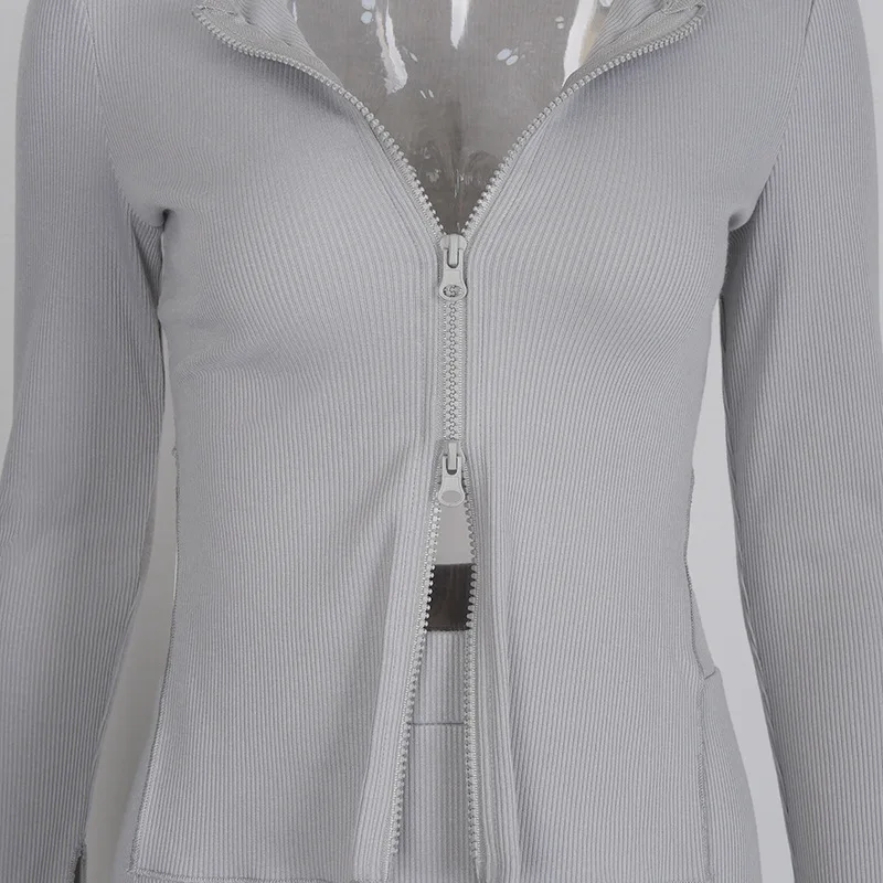 Limited Chance for New Spring Summer Women's Casual Cargo Style Two piece sets Long Sleeve zipper Crop top Shirt?Elastic Sexy Mini Short Skirt set