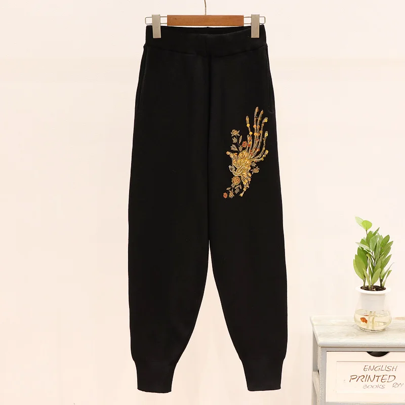 If You will buy for Women's Sets, then 2020 Spring Black Gray Knitted Tracksuit Women Beading Phoenix Long Sleeve Sweater + Long Pants 2 piece Set Women Loose Outfits may be make you like